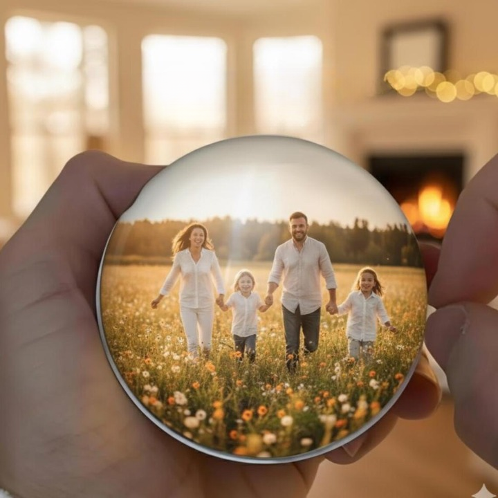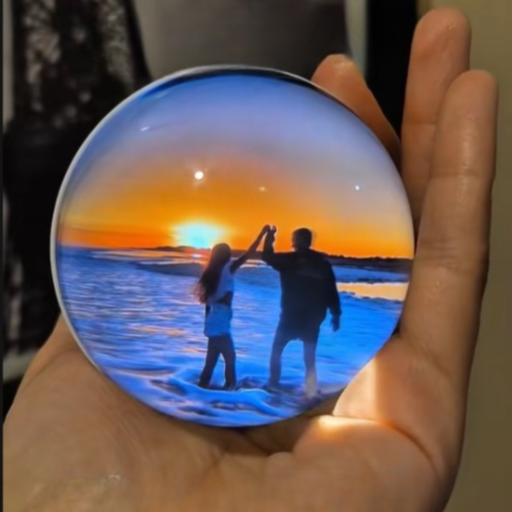 Ladda upp ditt favoritfoto och se det komma till liv i ett vackert, lysande glaskula.